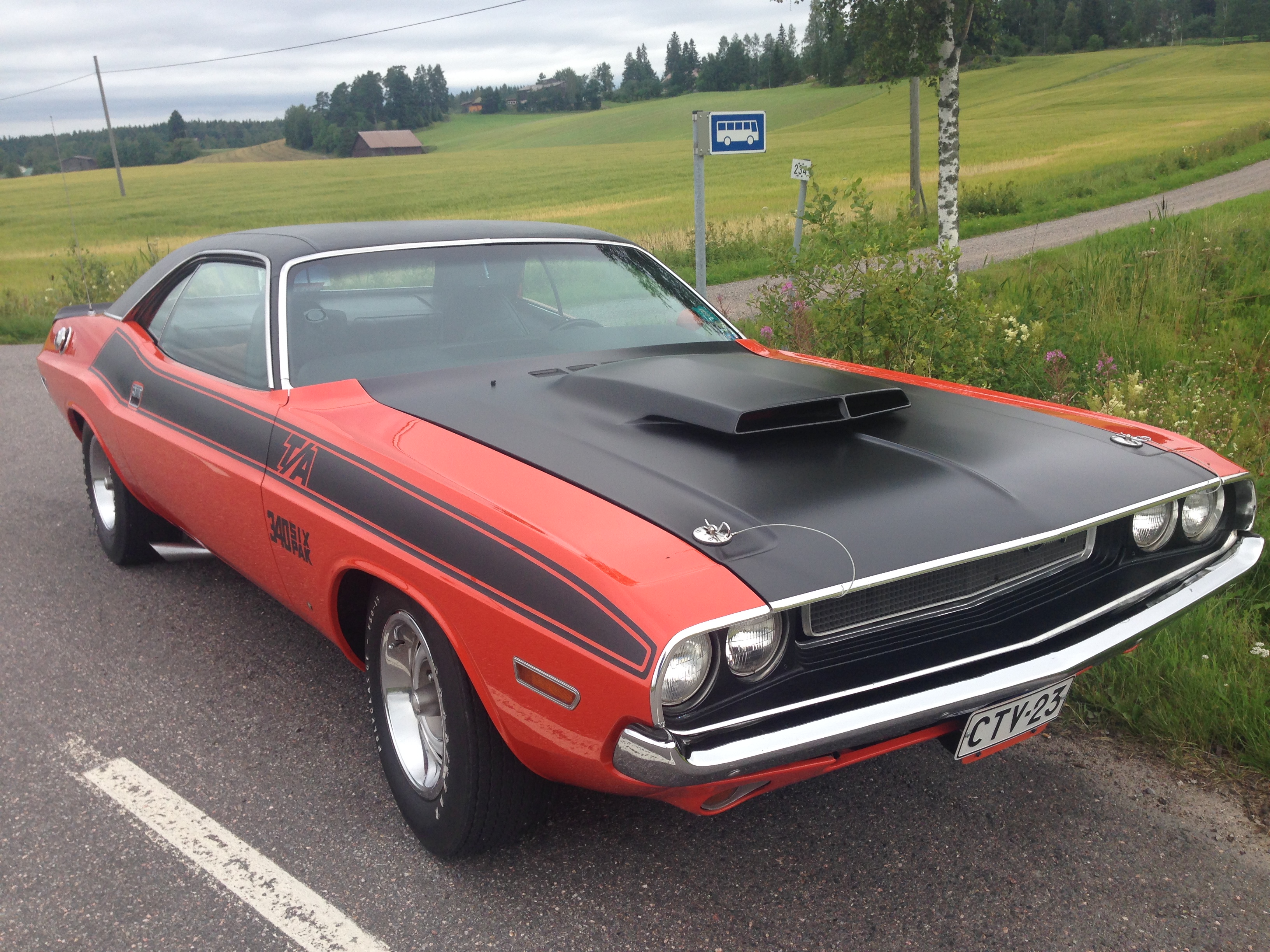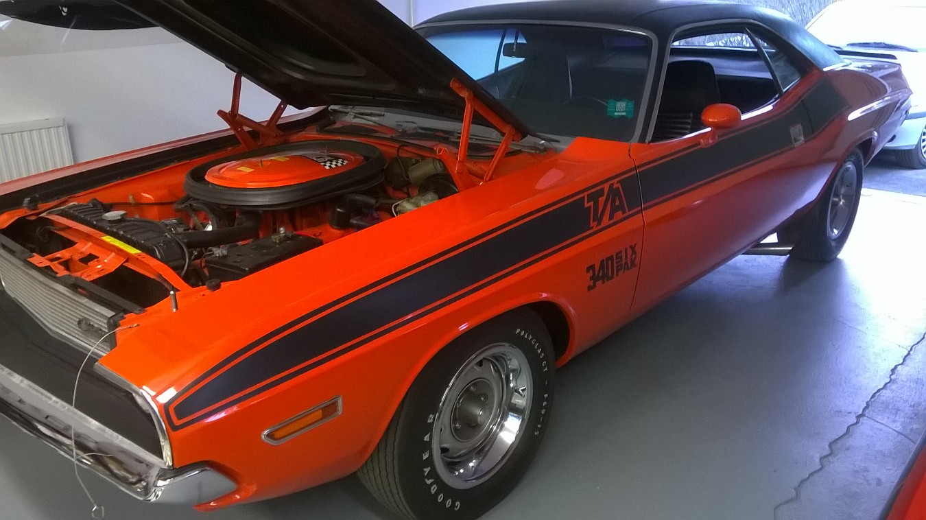 Dodge Challenger -70 T/A , J-koodi num#340 sixpack + automaatti, 489 case 3.55 välitys, museorekisterissä! Valmistettu 2400kpl, 1411 kpl automaatilla.